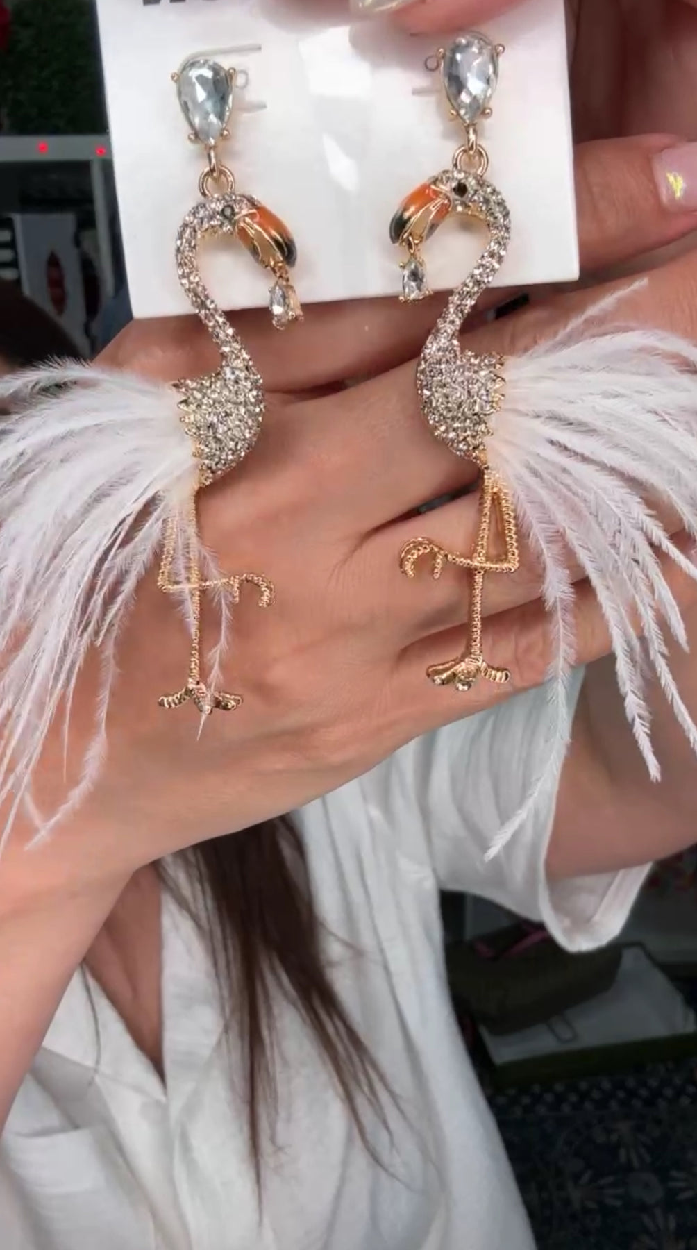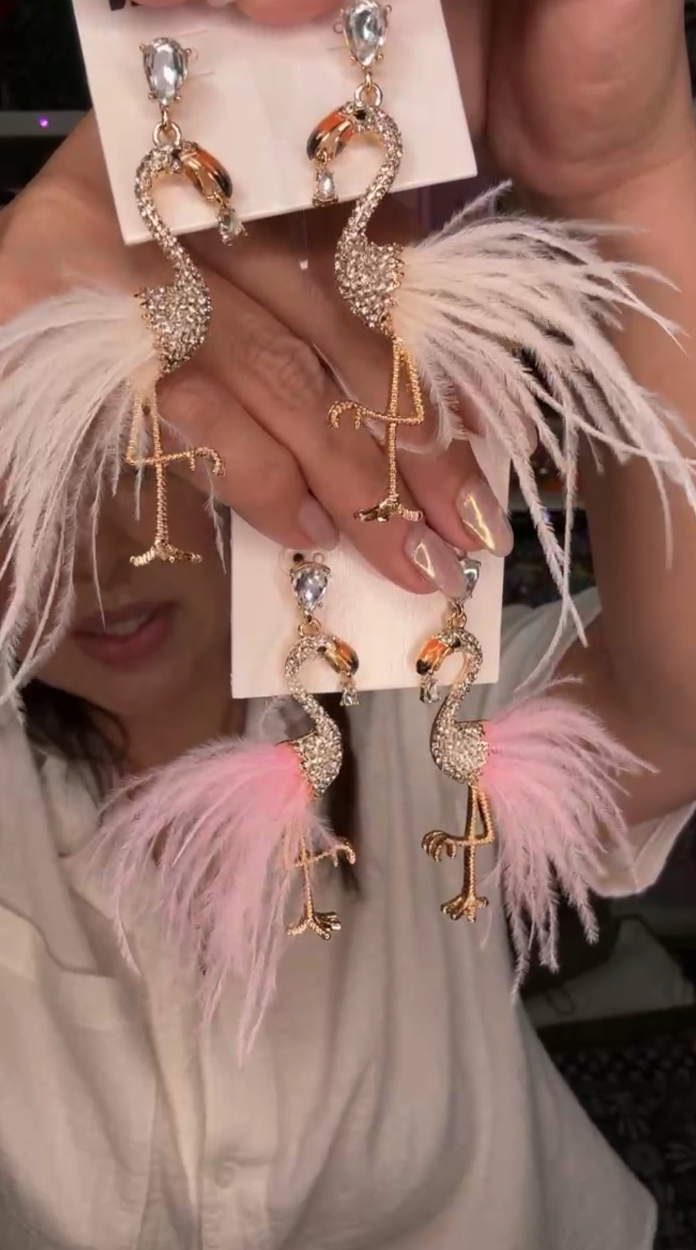 Arete blanco a dorado Flamingo cristales (#113)