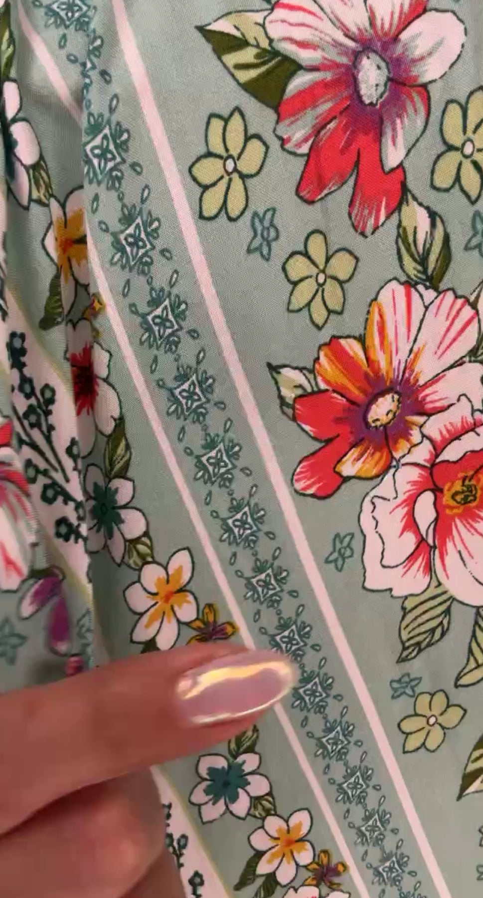 Vestido Verde Menta Floral Naranja Oversized Cintura Ajustable (#223)