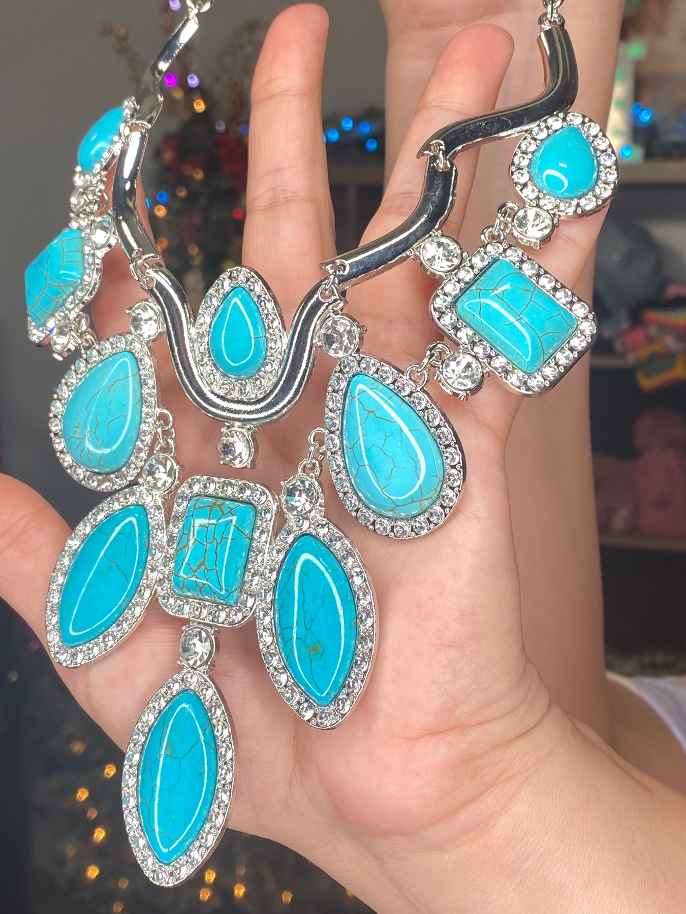 Collar Plateado con Piedra Turqueza y Pedreria Princess
