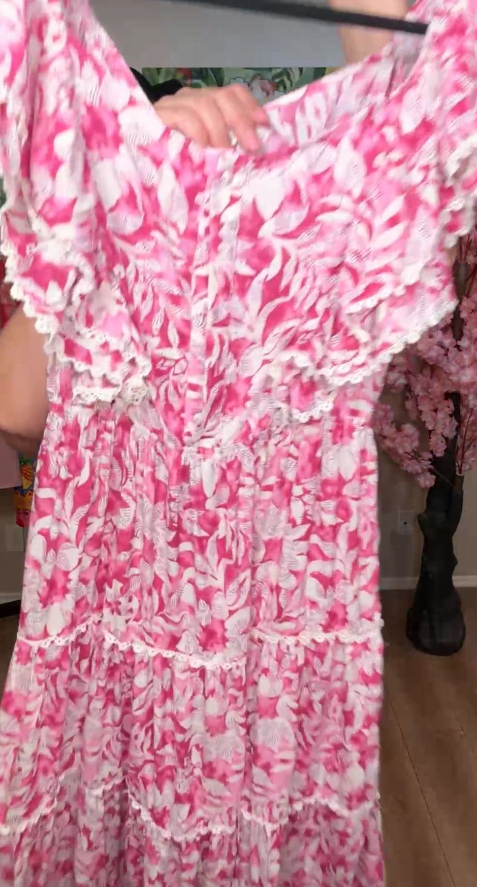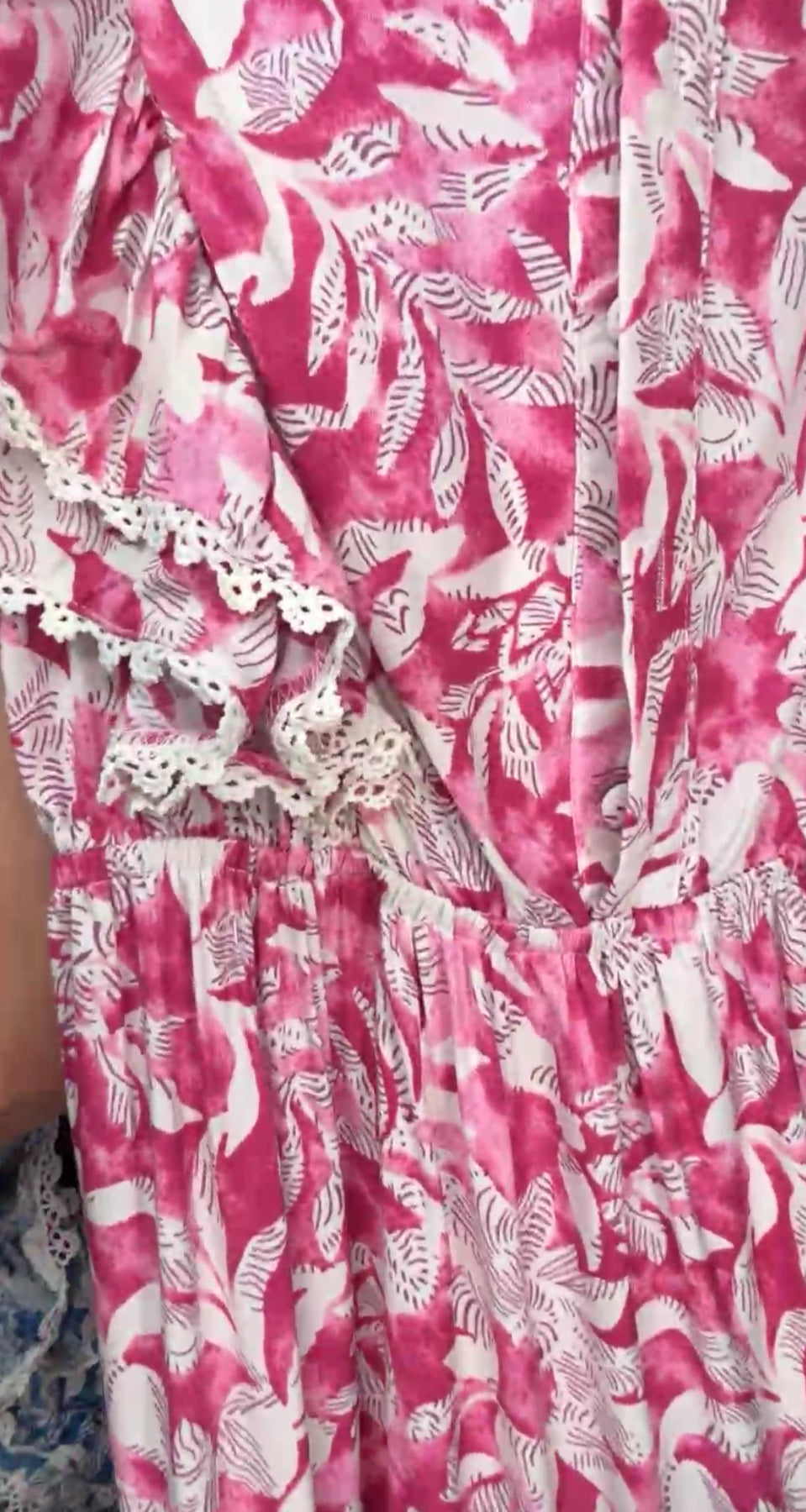 Romanticismo Primaveral: Vestido rosa con florecitas blancas, detalle de pechera ajustada y falda con ligero vuelo. Con una frescura vintage que te transporta a tardes soleadas.