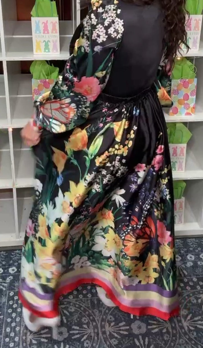Vestido Latiste Negro Falda Plizada Floral