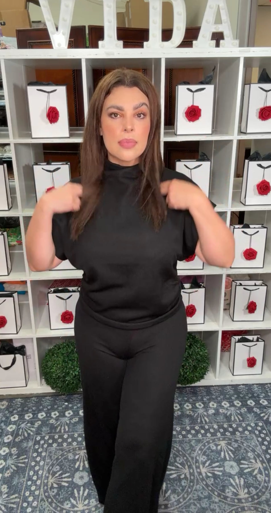 Set negro blusa cuello alto y pantalón relax (#124)