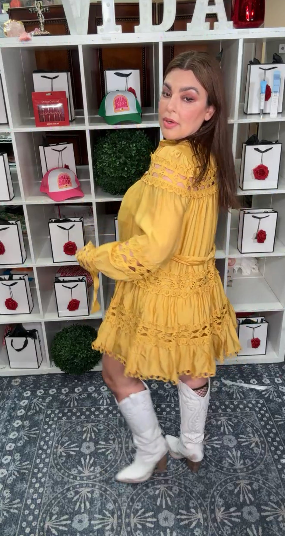Vestido Mostaza Crochet Efecto Lino Mini (#152)
