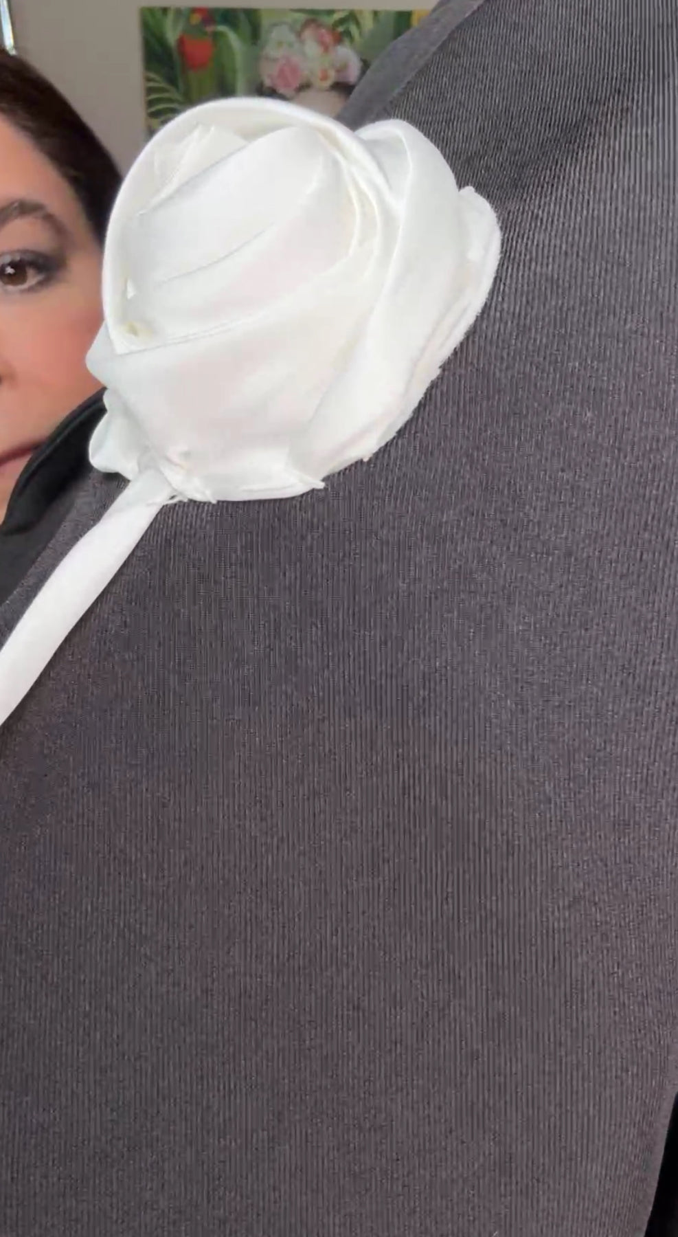 Blazer Negro Flores Blancas 3D Satinadas Corte Vestido