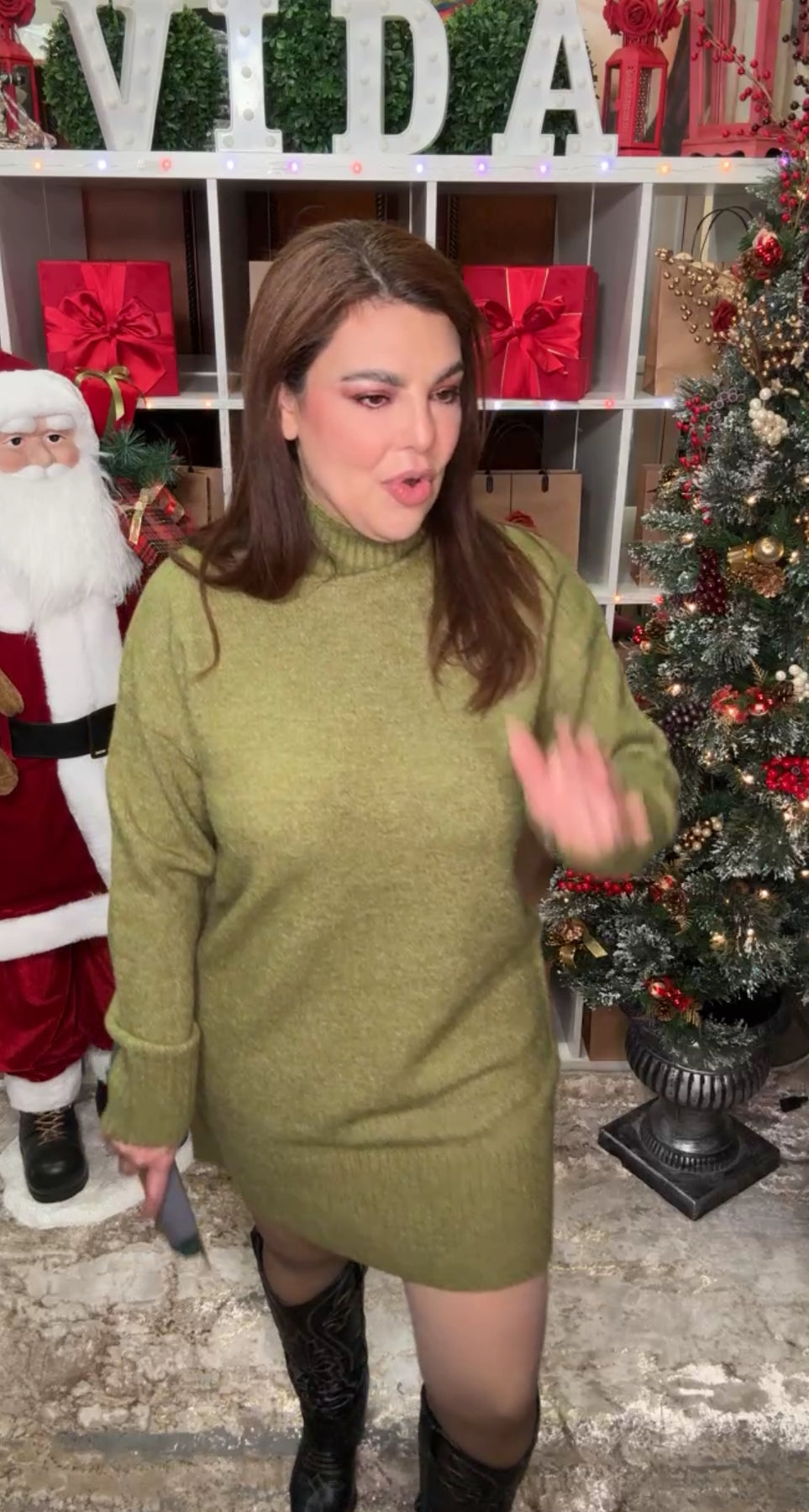 Vestido Verde De Punto Cuello Alto Relax (#170)