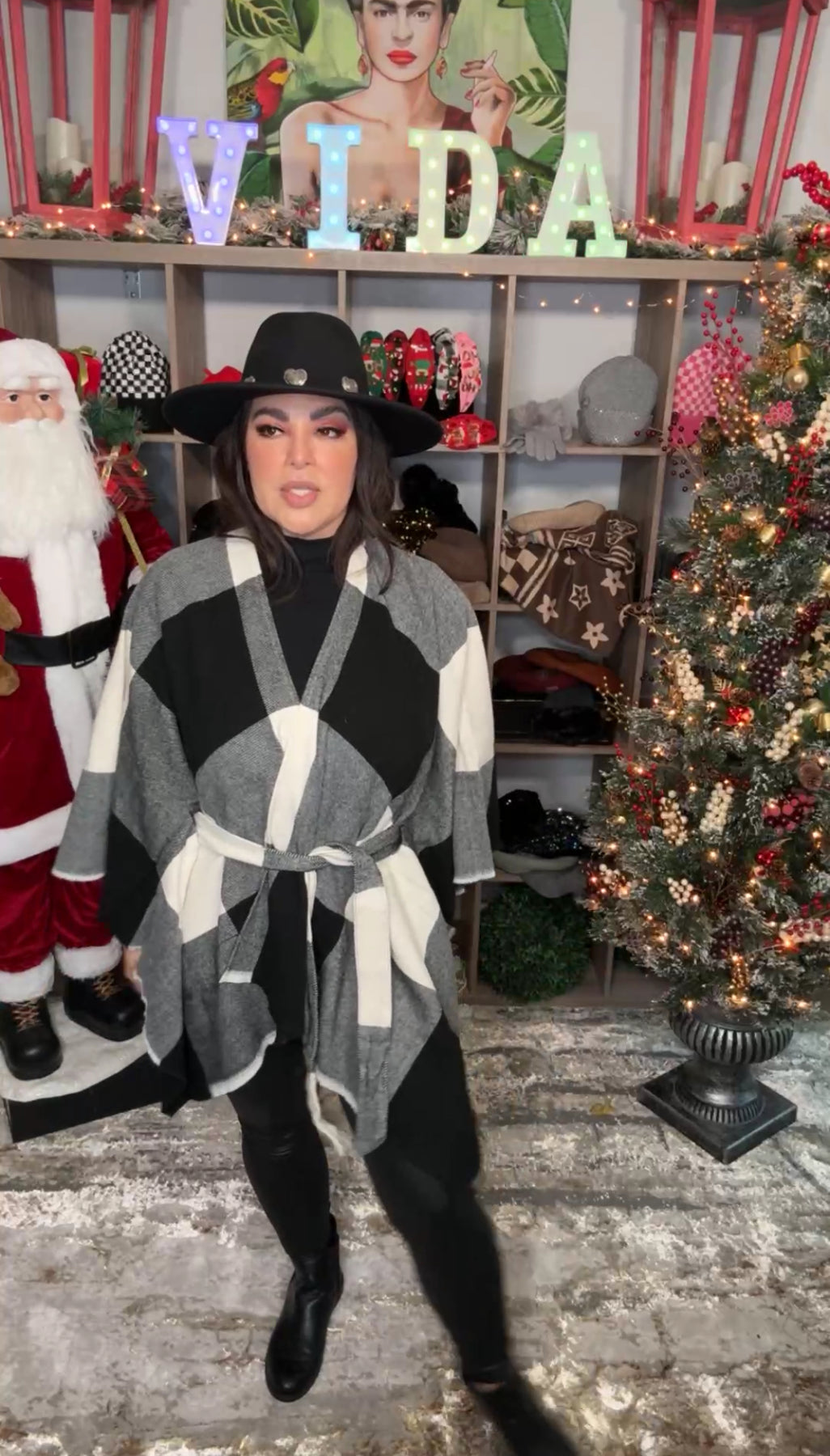 Shawl Negro y Beige Cuadrado con Cinto (#332)